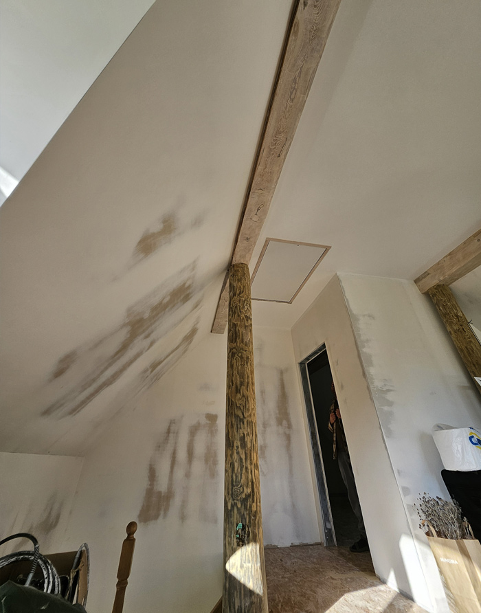 šai mājai ir 10x(h)20cm sijas, asīs ik pa ~60cm, ar istabas vidū, un gar kāpnēm izmantotām 20x20cm sijām.