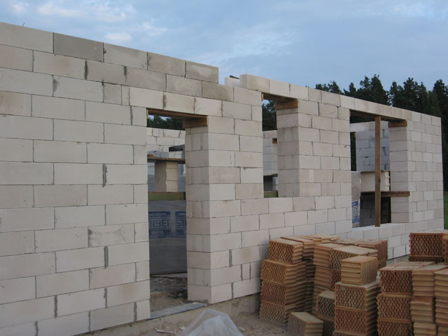 Ēkas ārsienas tiek mūrētas no Silbet gāzbetona blokiem 38cm biezumā.