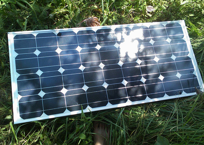 Kopš pavasara tiek lietotas http://www.prevent-germany.com/solarenergie-solarmodule/solarmodule-fuer-insel-oder-autarke-anlagen/prevent-solarmodul-hjm-85-d-monokristalines-mit.html šajā bodē pirktas rūpnieciski ražotas saules baterijas, pirmais tests rādija gandrīz 85w tiešā saulē, specifikācijā šim panelim uzrādīti 85w, tāka pirmais iespaids par tām bija vareni priecīgs. 85w ir gana daudz, lai pietiktu laptopam, akumulatoru lādēšanai un vēl pāri paliktu. Protams visu laiku tās neatrodas perpendikulāri saulei līdzarto vidējā dienas jauda ir mazāka. kā arī mākoņainās un tumšās dienās jauda var būt no gandrīz nulles, līdz 5 vai 10 vatiem utml. Šīs ir ļoti kvalitatīvi uztaisītas bezproblēmu saules baterijas, ūdensdrošas, ar stiprināšanai ērtu alumīnija rāmi utml. Kā arī cena tām ir gluži pieņemama, ņemot vērā visas to pozitīvās īpašības.