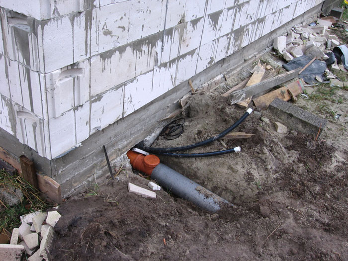 Kanalizācijas izvads uz biloģisko attīrīšanas sistēmu, melnās ūdensvada caurules – izvadi dārza laistīšanai. Lejot pamatus jāparedz aila.