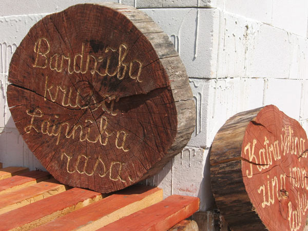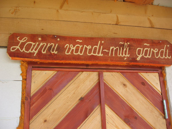 Durvis izgatavotas izmantojot līmēta koka plātnes no būvmateriālu veikala, 28mm biezumā. izdevās arī iekalt atslēgu un rokturi. Durvis dekorētas ar Latviešu rakstu zīmēm (Valda Celma grāmatas “Latvijas raksti”)