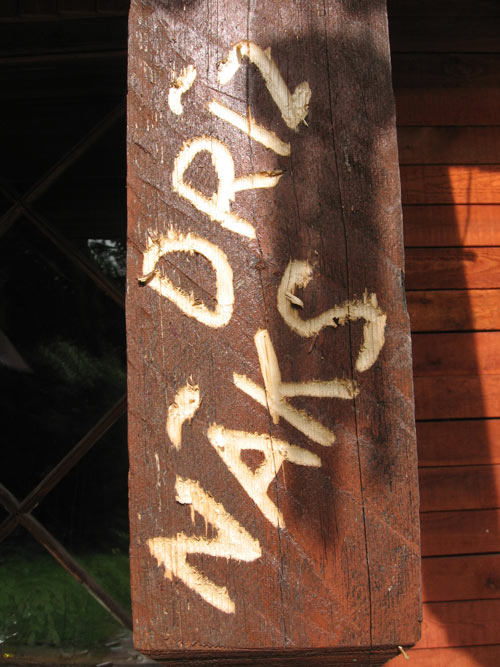 Pēc Vinnija Pūka motīviem – pie ēkas ārdurvīm “Driznaks” jeb norāde par to ka mājas saimnieks drīz atnāks, ja uz vietas nav sastopams.