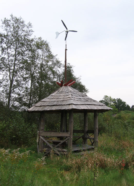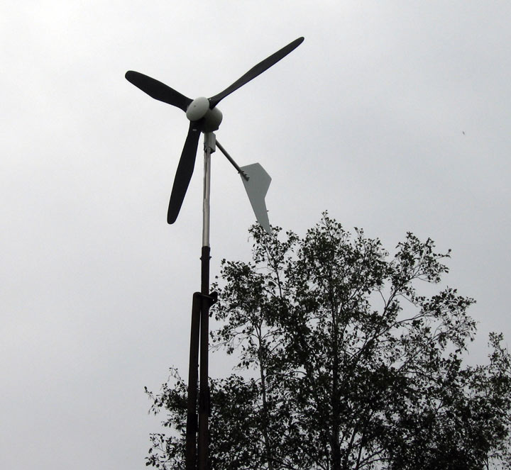 Šis vēja ģenerators iegādāts vācu interneta veikalā (turpat ir kvalitatīvas saules baterijas, nedārgi saules siltūdens kolektori u.c. alternatīvo energo tehnoloģiju izstrādājumi – prevent-germany.com), un uzstādīts uz lapenes izmēģināšanai.
