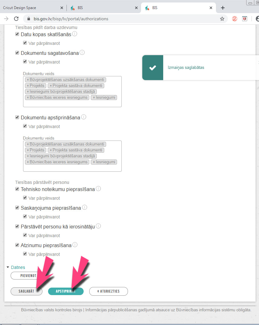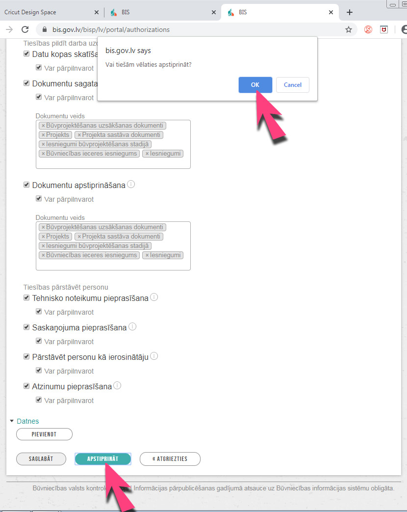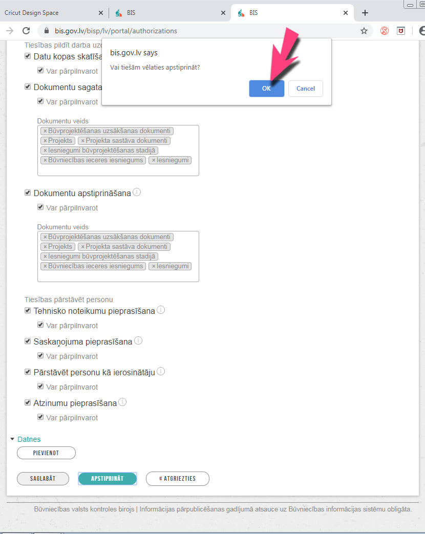 Atzīmējiet vēlamo, arī būvniecības lietas – norādiet savu konkrēto lietu, un tālāk ķeksējiet visus atlikušos ķeksīšus un atzīmējiet arī dokumentācijas daļas: