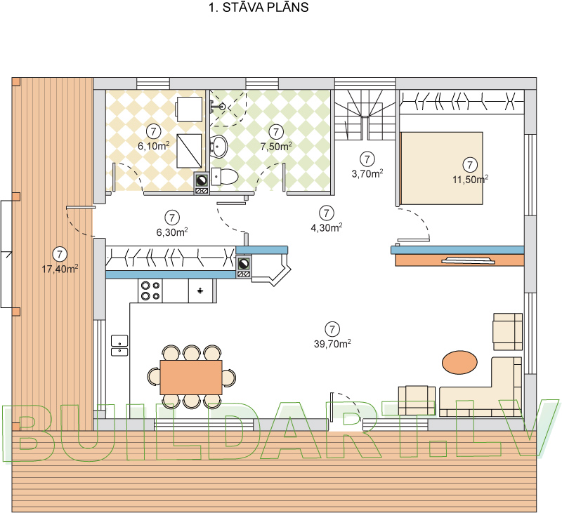 Projekts ērtai un ietilpīgai dzīvojamai mājai – četras lielas guļamistabas, pamatīga dzīvojamā istaba – 40 kvadrātmetri, ērtas palīgtelpas un vējtveris ar ietilpīgu drēbju novietni. Ilgus gadus iecienīts mūsu projekts bija “Agris” – ēka aptuveni 10x10m izmērā, projekts “Emīls” daļēji atvasināts no šī projekta, veidojot vēl lielāku iekštelpu platību. Ēkas gala sienā – apjumta terase un balkons. Konstruktīvi māja risināta racionālai, ekonomiskai būvniecībai ar nesošu starpsienu garenvirzienā. Gar ēkas dienvidu fasādi – plaša neapjumta terase.