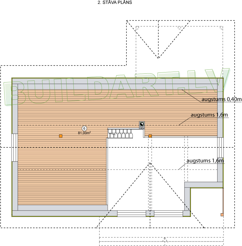 Jaunākās idejas dzīvojamo māju projektēšanā ir ēkas platības palielināšana izmantojot augšstāvu – “pus-stāvu” vai mezonīnu – tā nebūtiski ietekmējot būvniecības procesu un būvizmaksas var iegūt vērienīgas platības ēkas augšstāvā, kuras, varbūt nav tik pilnīgi izmantojamas kā ierasts, jo griestu slīpums telpas ierobežo, tomēr grīdas platība, šai versijā ir 80 kvadrātmetri, ļoti ērta un pietiekama gan viesu izguldināšanai, gan vietai kur iekārtot savas rotaļu pasaules bērniem, gan arī noliktavu funkcijām.